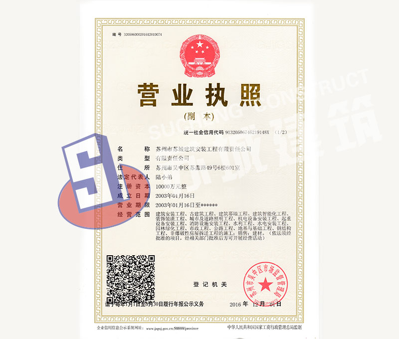 蘇州市蘇城建筑安裝工程有限責任公司,擁有主項建筑工程施工總承包一級資質(zhì),增項市政公用工程施工總承包二級資質(zhì)和建筑裝修